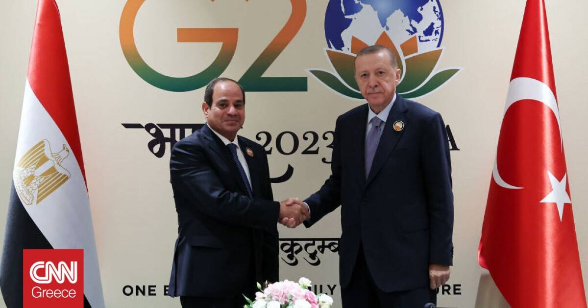 Ο Τούρκος πρόεδρος Ρετζέπ Ταγίπ Ερντογάν συναντήθηκε σήμερα, Κυριακή 10/09 με τον Αιγύπτιο ομόλογό του Άμπντελ Φάταχ αλ Σίσι στο περιθώριο της συνόδου της G20 στο Νέο Δελχί, σηματοδοτώντας το τέλος μίας δεκαετίας τεταμένων διμερών σχέσεων.