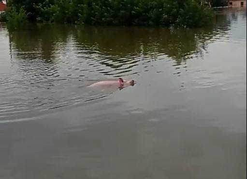 Ένα μικρό γουρουνάκι το οποίο φαίνεται να κολυμπά και να απολαμβάνει την απέραντη λίμνη, στην οποία έχει μετατραπεί ο θεσσαλικός κάμπος, δίνει έναν τόνο αισιοδοξίας στις ζοφερές αυτές μέρες.
