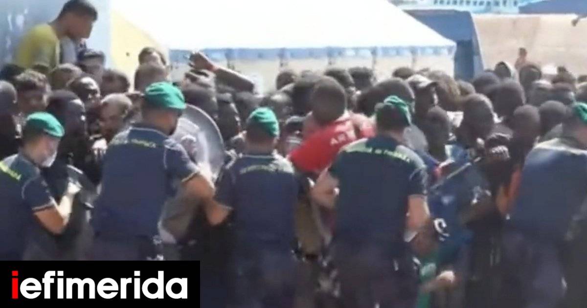 Στιγμές έντασης εκτυλίχθηκαν στο λιμάνι της Λαμπεντούζα στην Ιταλία, με αστυνομικούς της Guardia di Finanza να προσπαθούν να συγκρατήσουν εκατοντάδες μετανάστες που προσπαθούν να εγκαταλείψουν την προβλήτα και να διασπάσουν τον κλοιό.