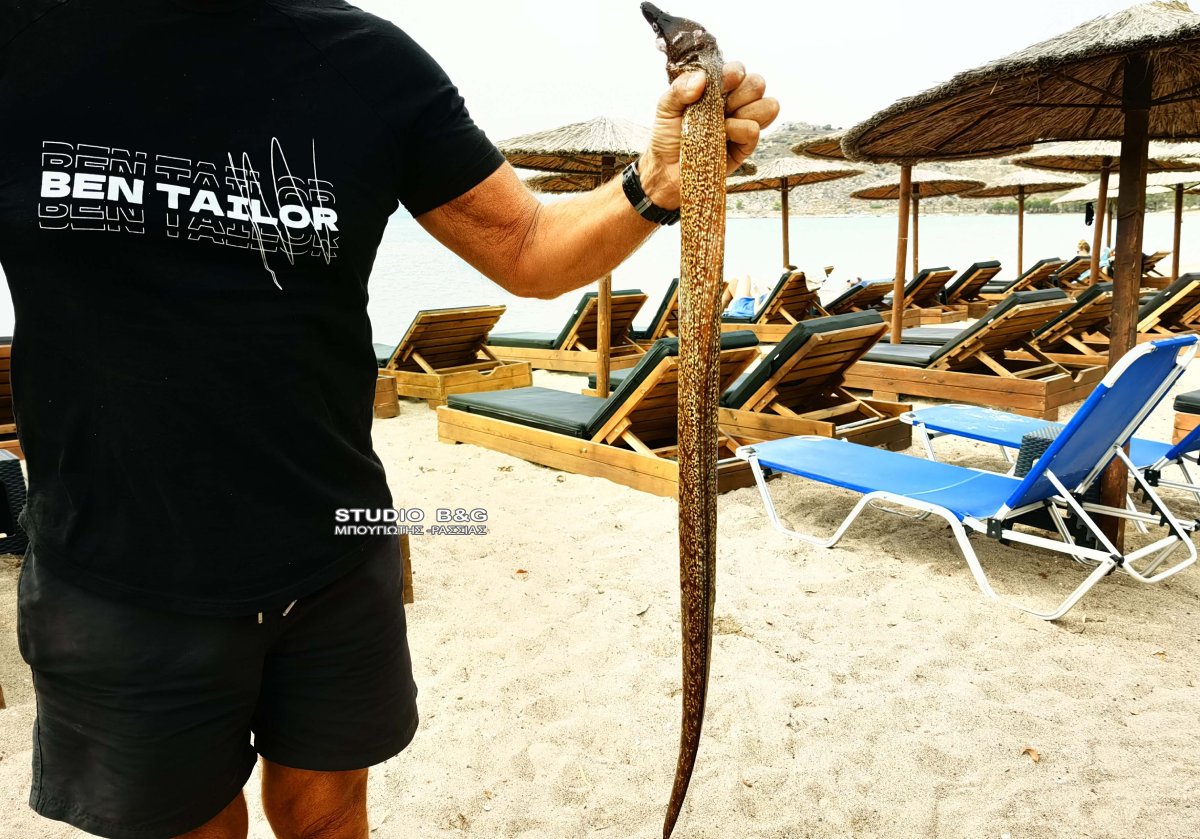 Μεγάλη αλλά και…επικίνδυνη ψαριά έβγαλε ερασιτέχνης αλιέας στην παραλία Καραθώνας στο Ναύπλιο την Πέμπτη 21 Σεπτεμβρίου 2023.