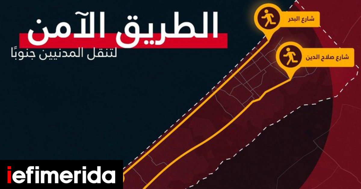 O Ισραηλινός στρατός ενημέρωσε αμάχους που ζουν στο βόρειο τμήμα της Λωρίδας της Γάζας ότι μπορούν να χρησιμοποιήσουν δύο ασφαλείς διαδρόμους για να μετακινηθούν στο νότιο τμήμα του παλαιστινιακού θυλάκου.