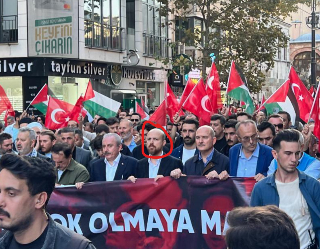Όπως φαίνεται σε ανάρτηση στο Χ του συγγραφέα και ιστορικού, Babak Taghvaee, ο γιος του Ερντογάν, Μπιλάλ και ο γαμπρός του, Σελτσούκ πήγαν χθες, Σάββατο, σε διαδήλωση υπέρ της Παλαιστίνης.