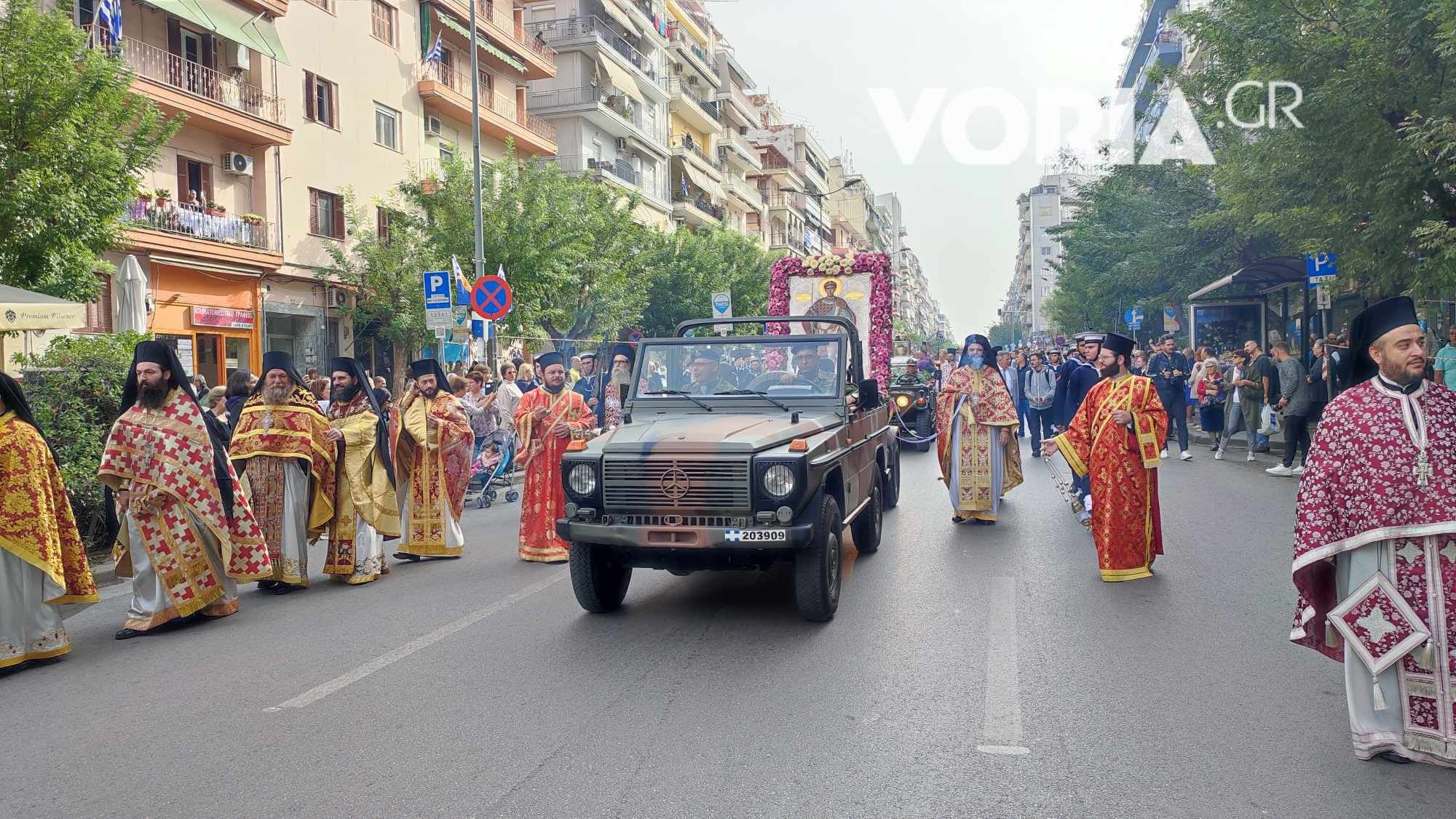 Σε κλίμα θρησκευτικής κατάνυξης πραγματοποιείται η λιτανεία και η περιφορά της εικόνας της Παναγίας «Κορωνιωτίσσης», των λειψάνων και της εικόνας του Πολιούχου Αγίου Δημητρίου, στη Θεσσαλονίκη.