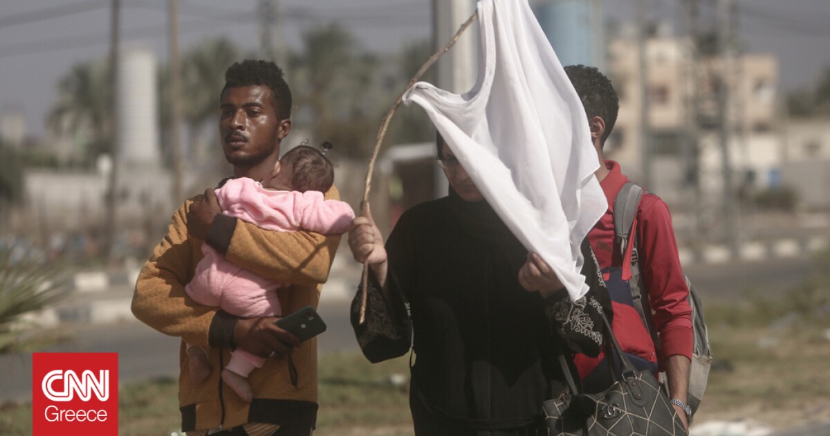 Παλαιστίνιοι φεύγουν από την πόλη της Γάζας για το νότιο τμήμα, κρατώντας λευκές σημαίες AP Photo / Mohammed Dahman, File