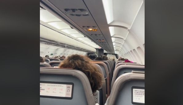 Στο βίντεο λέει χαρακτηριστικά: «η προσγείωση αναμένεται περίπου σε 8 λεπτά. Δηλαδή να προσγειωνόμαστε 23:15 αντί για 23:50».