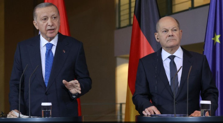 Σταθεροί στις θέσεις τους για την κρίση στη Μέση Ανατολή παρέμειναν τόσο ο καγκελάριος Όλαφ Σολτς όσο και ο πρόεδρος της Τουρκίας Ταγίπ Ερντογάν, κατά την εμφάνισή τους χθες ενώπιον του Τύπου, πριν από το δείπνο εργασίας τους στην καγκελαρία.