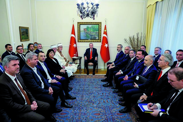 Ενα τετράγωνο παραπέρα από το Μαξίμου πήγε ο Ερντογάν μετά τη συνάντησή του με τον Πρωθυπουργό – και, ναι, αυτό το ένα τετράγωνο το διένυσε με την προσωπική του Μερτσέντες που «πέταξε» στην Αθήνα από την Αγκυρα. Προορισμός η τουρκική πρεσβεία, όπου συναντήθηκε σχεδόν επί δύο ώρες με εκπροσώπους της μουσουλμανικής μειονότητας και όχι μόνο. Το πρώτο συναπάντημα ήταν έξω από την πρεσβεία, όπου τον περίμενε ο τούρκος προπονητής του Παναθηναϊκού, Εργκίν Αταμάν, με τον οποίο μπήκαν μέσα μαζί και, όπως είπε μετά στους δημοσιογράφους, ήπιαν καφέ και συζήτησαν για μπάσκετ. Ο προπονητής αστειεύτηκε μάλιστα πως πρέπει ο Ερντογάν με… Πηγή