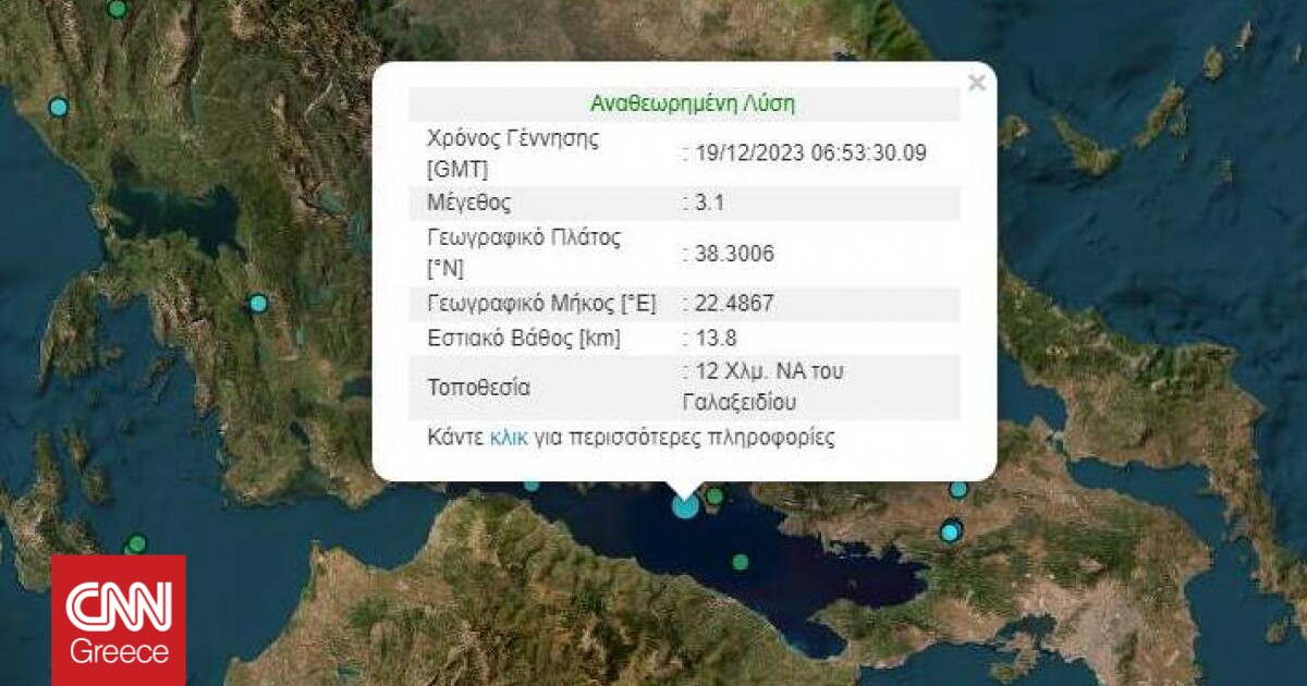 Ειδικότερα, σύμφωνα με το Γεωδυναμικό Ινστιτούτο το επίκεντρο της σεισμικής δόνησης εντοπίζεται 12 χιλιόμετρα Νοτιοανατολικά του Γαλαξιδίου, ενώ το εστιακό βάθος της είναι 13,8 χιλιόμετρα.