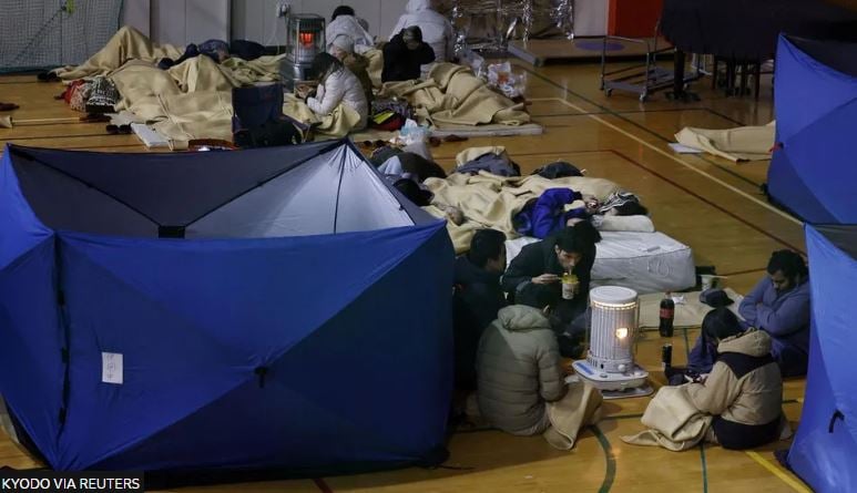 Σε ειδικά κέντρα εκκένωσης θα διανυκτερεύσουν χιλιάδες άνθρωποι στην Ιαπωνία, μετά τον ισχυρό σεισμό των 7,6 Ρίχτερ που συγκλόνισε την χώρα την Πρωτοχρονιά. Μέχρι στιγμής, έχει επιβεβαιωθεί ότι τέσσερις άνθρωποι έχουν χάσει την ζωή τους, ενώ δεκάδες άλλοι τραυματίστηκαν, σύμφωνα με το πρακτορείο ειδήσεων Kyodo.