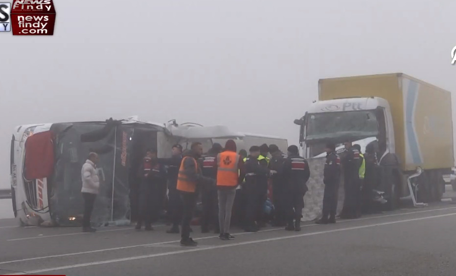 Όπως μεταδίδουν τα τουρκικά μέσα ενημέρωσης νωρίς το πρωί της Τρίτης (02/01) επιβατικό λεωφορείο και φορτηγό συγκρούστηκαν στον αυτοκινητόδρομο με τις πρώτες πληροφορίες να κάνουν λόγο για τουλάχιστον 4 νεκρούς και 36 τραυματίες. Οι αρχές εκφράζουν φόβους ότι ο αριθμός των θυμάτων μπορεί να αυξηθεί.