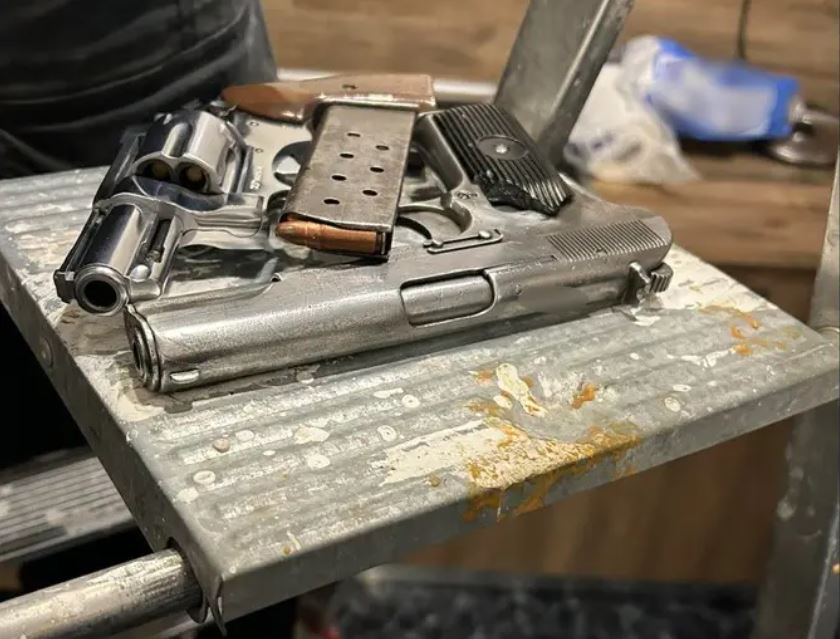 Ειδικότερα, οι αστυνομικοί εντόπισαν τρία πιστόλια, ένα περίστροφο, πλήθος γεμιστήρων για τα συγκεκριμένα όπλα, κινητά τηλέφωνα, καθώς και σύστημα παρεμβολής σήματος κινητής τηλεφωνίας.