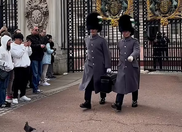 Η βασιλική φρουρά άφησε τους βασιλικούς θαυμαστές σαστισμένους για άλλη μια φορά, όταν φώναξαν «κάντε χώρο» σε ένα ζευγάρι περιστέρια που μπλόκαραν το πεζοδρόμιο έξω από τα ανάκτορα του Μπάκιγχαμ.