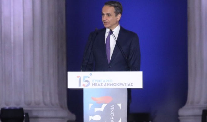 «Το 15ο συνέδριο είναι διπλά εορταστικό, συμπίπτει με τα γενέθλια της Δημοκρατίας και της ΝΔ», τόνισε ο πρωθυπουργός.