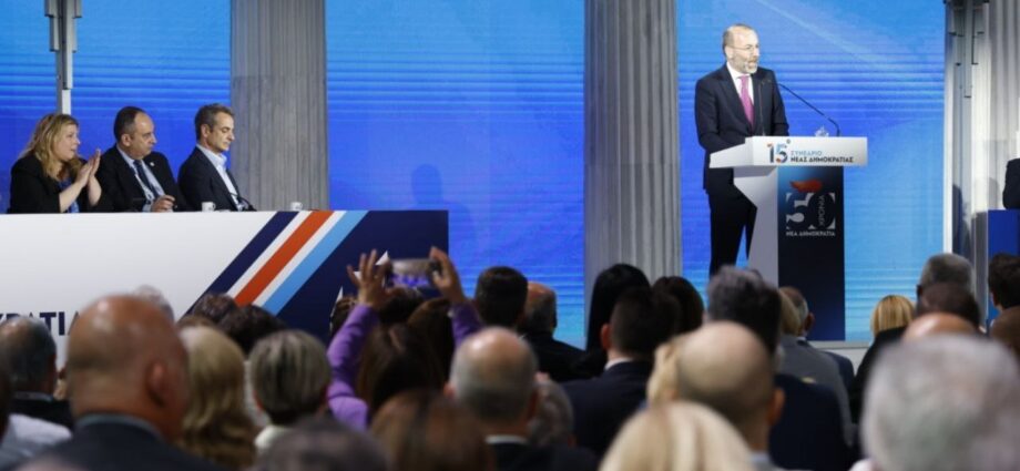 Τις θέσεις του Κυριάκου Μητσοτάκη σε διεθνή θέματα, όπως το μεταναστευτικό, ο πόλεμος στην Ουκρανία και η οικονομία υποστήριξε ο πρόεδρος του Ευρωπαϊκού Λαϊκού Κόμματος, Μάνφρεντ Βέμπερ, μιλώντας στο 15ο Συνέδριο της Νέας Δημοκρατίας.