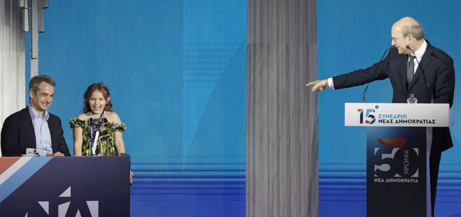 «Μιλάω και μου κλέβεις την παράσταση» ανέφερε κάποια στιγμή της ομιλίας του στο συνέδριο της ΝΔ ο Κωστής Χατζηδάκης απευθυνόμενος σε ένα κοριτσάκι που στεκόταν δίπλα στον πρωθυπουργό! Και πράγματι έτσι ήταν, το κορίτσι έκλεψε την παράσταση κατά τη διάρκεια της ομιλίας του υπουργού Οικονομικών… Ενώ καμία στιγμή δεν τα έχασε παρά το γεγονός ότι όλοι οι προβολείς είχαν πέσει επάνω της!