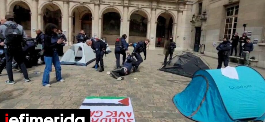 Η αστυνομία επενέβη σήμερα το απόγευμα, τοπική ώρα, στο Πανεπιστήμιο της Σορβόννης, στο Παρίσι, για να απομακρύνει δεκάδες διαδηλωτές που πραγματοποιούσαν κινητοποίηση υπέρ των Παλαιστινίων στη Γάζα.