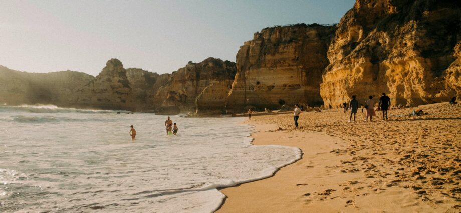 «Η Praia da Falesia είναι γνωστή για τους εντυπωσιακούς βράχους, τη χρυσή άμμο και τα αστραφτερά γαλάζια νερά της. Κάντε ηλιοθεραπεία στην τεράστια ακτή, κάντε κολύμπι ή σέρφινγκ… Πηγή
