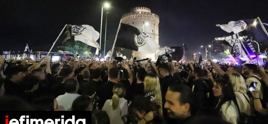 Ολονύχτιο πάρτι στήθηκε από τους οπαδούς του ΠΑΟΚ στη Θεσσαλονίκη για την κατάκτηση του πρωταθλήματος, με το γλέντι να κορυφώνεται στον Λευκό Πύργο.