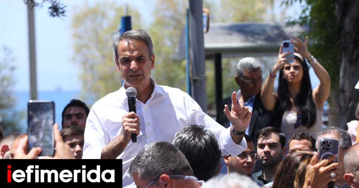 «Το γαλάζιο Φάληρο. Εδώ που το γαλάζιο της ΝΔ συναντιέται με το γαλάζιο της θάλασσας, το γαλάζιο του ουρανού, το γαλάζιο της σημαίας μας για μία Ελλάδα ισχυρή, για μία Ελλάδα υπερήφανη στην Ευρώπη. Γι αυτό θα ψηφίσουμε στις εκλογές της 9ης Ιουνίου», τόνισε.
