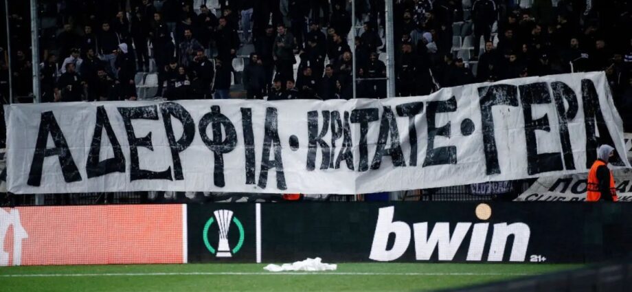 Αθώοι κρίθηκαν από το Τριμελές Πλημμελειοδικείο Θεσσαλονίκης τρεις νεαροί που παραπέμφθηκαν να δικαστούν για την ανάρτηση πανό στο γήπεδο της Τούμπας που ανέγραφε «Αδέρφια κρατάτε γερά» στο πλαίσιο αγώνα του ΠΑΟΚ κόντρα στη Μίντιλαντ για το Conference League στις 24 Φεβρουαρίου του 2022.