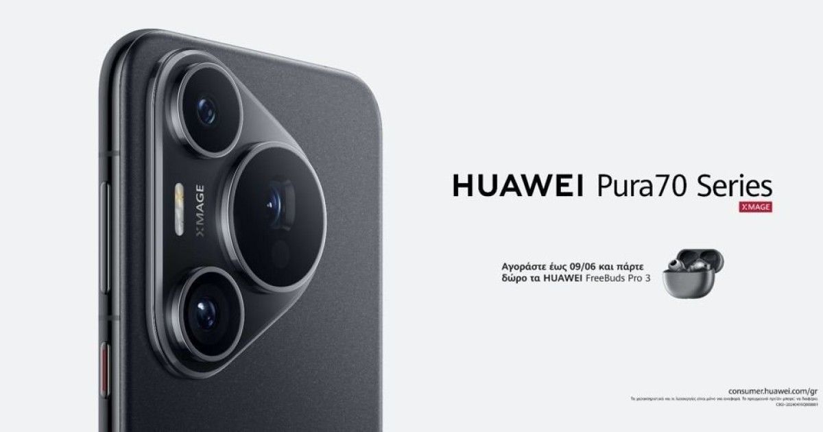 Το HUAWEI Pura 70 Pro διαθέσιμο στα ελληνικά καταστήματα από 27 Μαϊου. Ο τέλειος συνδυασμός κορυφαίας τεχνολογίας στα φωτογραφικά smartphone με το πιο πρωτότυπο design, το νέο smartphone-ναυαρχίδα της Huawei οδηγεί για άλλη μία φορά τις εξελίξεις στη mobile φωτογραφία και του εμβληματικού σχεδιασμού.