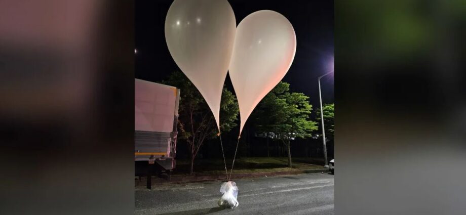Φωτογραφίες που δημοσιεύτηκαν στα νοτιοκορεάτικα μέσα ενημέρωσης δείχνουν λευκά μπαλόνια να μεταφέρουν σακούλες σκουπιδιών γεμάτες με απορρίμματα και κάτι που μοιάζει με περιττώματα.