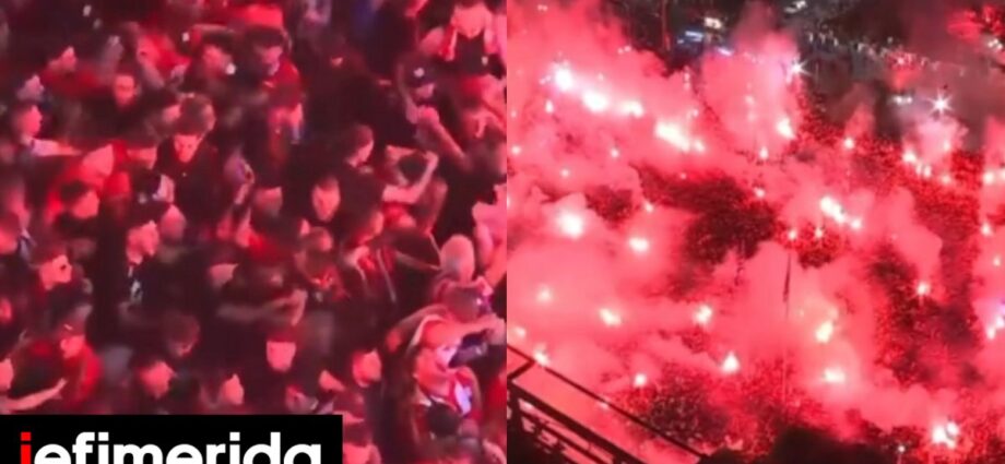 Η στιγμή που εκρήγνυται η πλατεία Κοραή με τους χιλιάδες Ολυμπιακούς