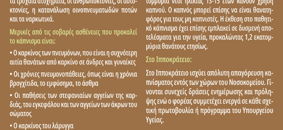 Ακόμα σε αυτή παρατίθενται μερικές από τις σοβαρές ασθένειες που προκαλεί το κάπνισμα. Αυτές είναι: