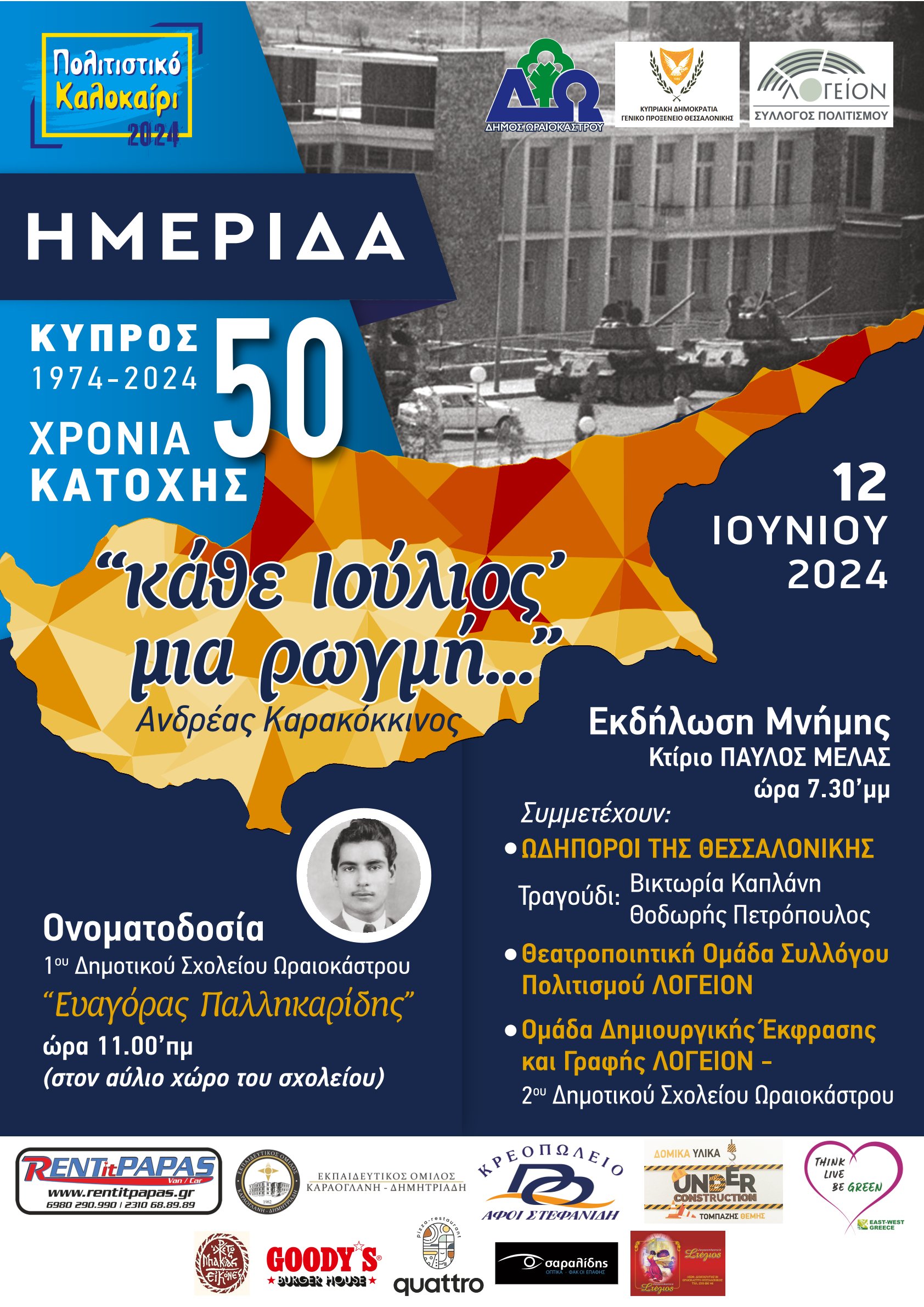 Πρόκετιαι για σειρά εκδηλώσεων προς τιμή του Κύπριου αγωνιστή οι οπόίες εντάσσονται στις εκδηλώσεις «Πολιτιστικό Καλοκαίρι 2024» του δήμου Ωραιοκάστρου και συνδιοργανώνονται από τον δήμο, το 1ο Δημοτικό Σχολείο Ωραιοκάστρου «Ευαγόρας Παλληκαρίδης» και τον Σύλλογο Πολιτισμού «Λογείον», υπό την αιγίδα του Γενικού Προξενείου της Κύπρου… Πηγή