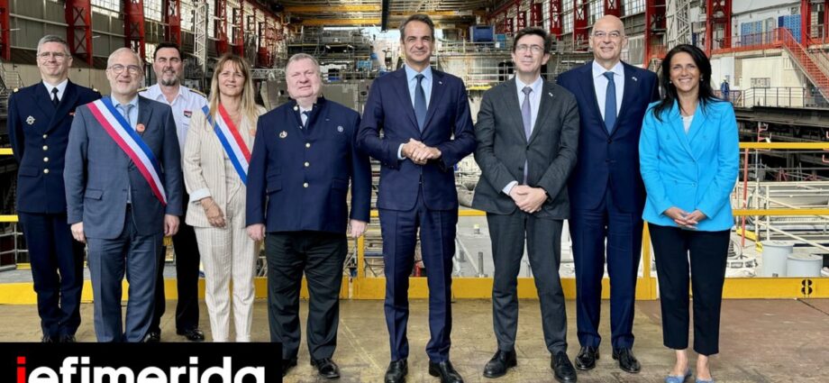 Επίσκεψη στα ναυπηγεία του Λοριάν όπου κατασκευάζονται οι τρεις φρεγάτες Belharra για το ελληνικό Πολεμικό Ναυτικό πραγματοποιεί ο πρωθυπουργός Κυριάκος Μητσοτάκης.