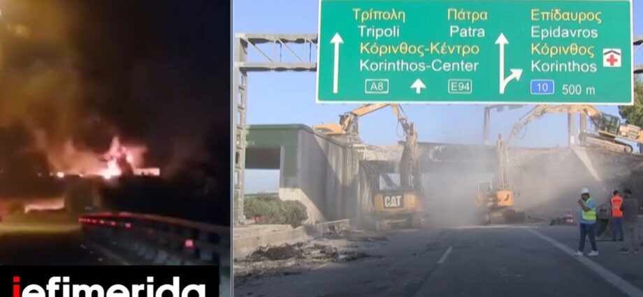Στην κατεδάφιση γέφυρας στον Ισθμό, που υπέστη σοβαρές ζημιές έπειτα από φωτιά σε βυτιοφόρο το βράδυ της Παρασκευής στην εθνική οδό Αθηνών-Κορίνθου, προχωρούν οι Αρχές.