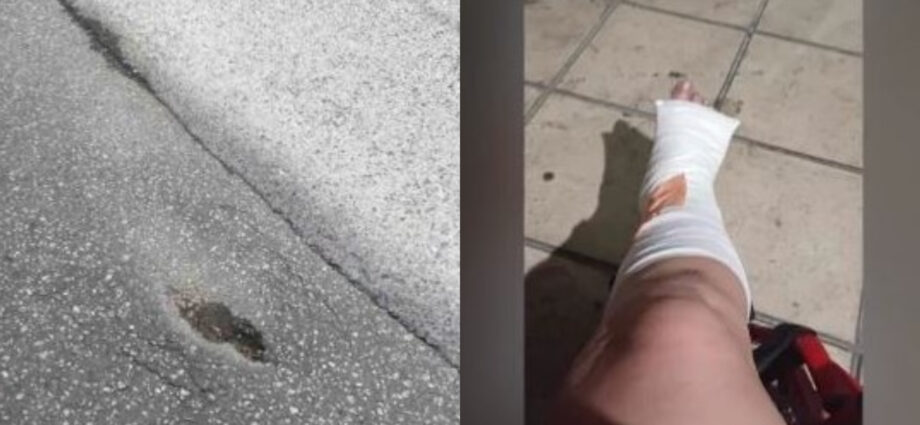 Με πολλαπλά κατάγματα κατέληξε μια γυναίκα από τον Εύοσμο Θεσσαλονίκης, η οποία περπατούσε στον δρόμο με το 10χρονο παιδί της, όταν, ξαφνικά λόγω υποχώρησης του οδοστρώματος, έπεσε και χτύπησε σοβαρά.