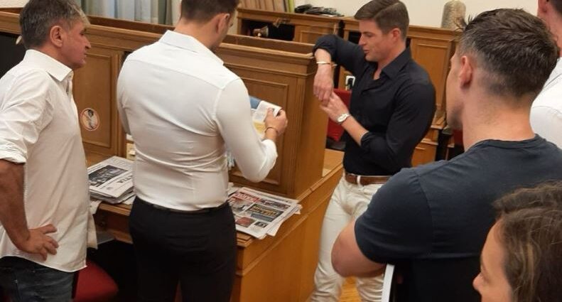 Μετά από την ξενάγηση στους χώρους της Βουλής, οι Στέφανος Κασσελάκης, Τάιλερ Μακμπεθ και οι φίλοι… Πηγή