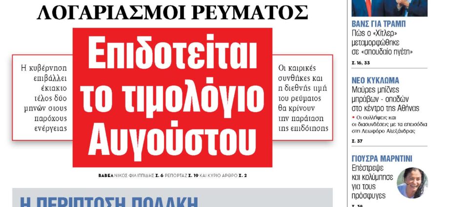 Επιδοτείται το τιμολόγιο Αυγούστου