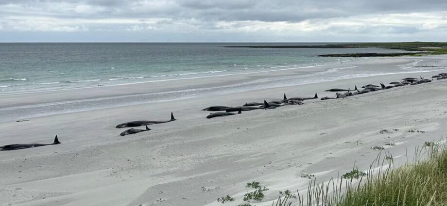 Ένα κοπάδι 77 φαλαινών ξεβράστηκε στο νησί Sanday στην Σκωτία.