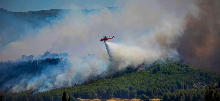 Μαίνεται ανεξέλεγκτη η φωτιά που ξέσπασε λίγο πριν τις 2 το μεσημέρι στην κεντρική Εύβοια.