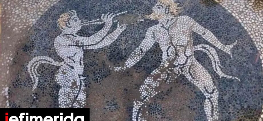Σπουδαία αποκάλυψη συγκλονιστικού βοτσαλωτού ψηφιδωτού δαπέδου με παράσταση Σατύρων στην Ερέτρια.