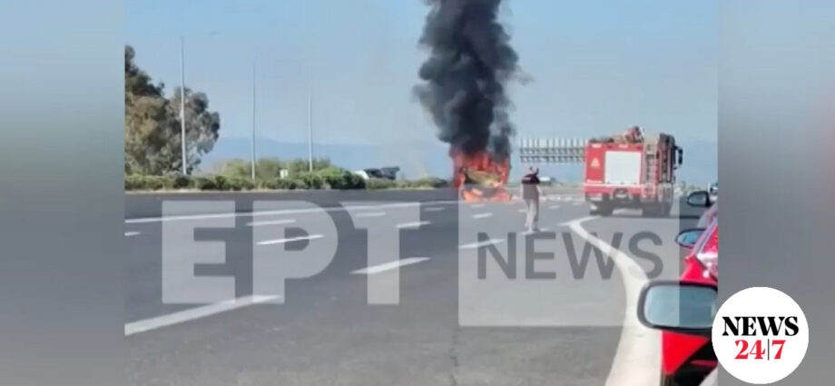 Σημειώνεται πως, μετά την ανατροπή του οχήματος, στο 56ο χλμ. της Εθνικής Οδού Αθηνών – Κορίνθου, ξέσπασε μεγάλη φωτιά. Σύμφωνα με πληροφορίες, η φωτιά σημειώθηκε στη μηχανή του οχήματος και όχι στο βυτίο.
