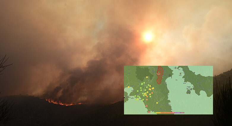 Στον χάρτη που ακολουθεί, τα σημεία με ροζ χρώμα κρίνονται ως επικίνδυνα για το σύνολο του πληθυσμού, ενώ με πορτοκαλί είναι οι επικίνδυνες περιοχές για τις ευάλωτες ομάδες. Με κίτρινο είναι οι περιοχές… Πηγή