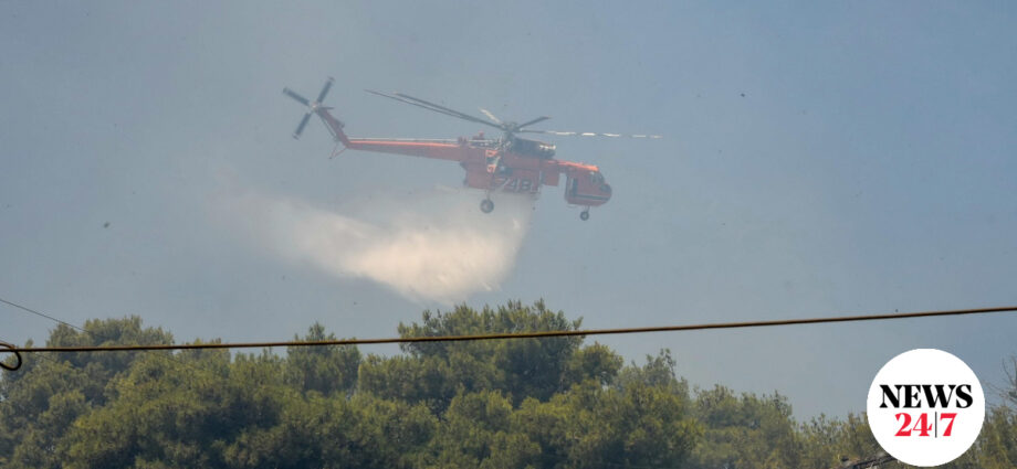 Σύμφωνα με την Πυροσβεστική, η φωτιά καίει χορτολιβαδική έκταση, ενώ για την κατάσβεσή της επιχειρούν 22 Πυροσβέστες με 8 οχήματα και σηκώθηκαν και τρία ελικόπτερα.
