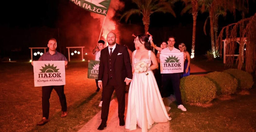 Γάμος αλά ΠΑΣΟΚ στο Αγρίνιο: «Καλημέρα Ήλιε», πράσινες σημαίες και καπνογόνα