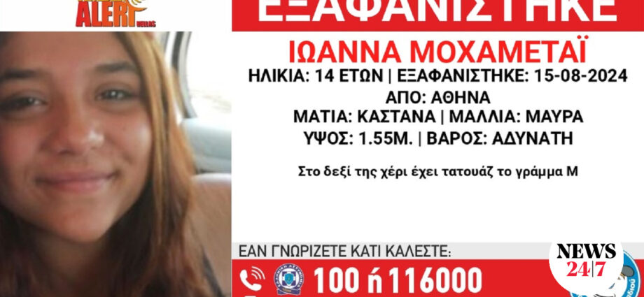 Συναγερμός έχει σημάνει στις Αρχές για την εξαφάνιση της 14χρονης Μοχαμεταϊ Ιωάννα, τα ίχνη της οποίας χάθηκαν το πρωί της 15ης Αυγούστου από την περιοχή της Αθήνας.
