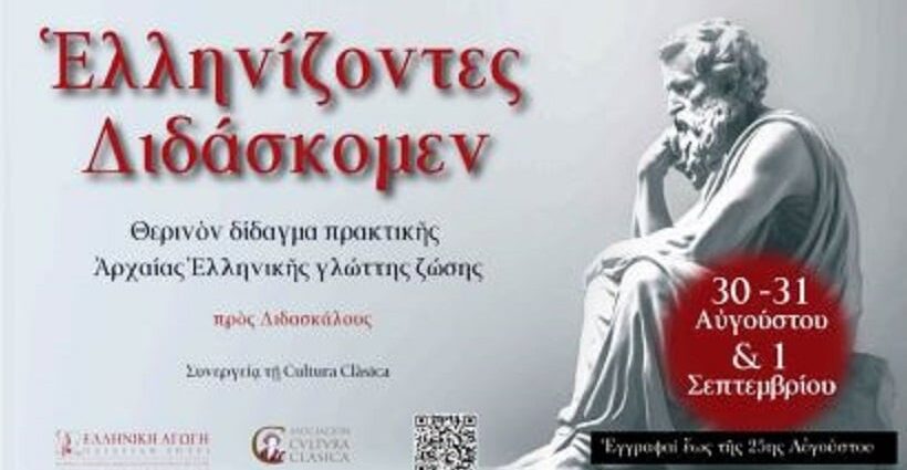 Η Ἑλληνικὴ Ἀγωγή, Σχολὴ Ἀρχαίων Ἑλληνικῶν σε συνεργασία με τον Ισπανικό Εκπαιδευτικό Οργανισμό Cultura Clàsica διοργανώνει για πρώτη φορά στην Ελλάδα το πρωτοποριακό σεμινάριο «Ἑλληνίζοντες Διδάσκομεν» και προσφέρει μια μοναδική ευκαιρία στους εν ενεργεία εκπαιδευτικούς (Πρωτοβάθμιας και Δευτεροβάθμιας Εκπαίδευσης) να παρακολουθήσουν μία νέα προσέγγιση στη διδασκαλία των Αρχαίων Ελληνικών εφόσον το επιθυμούν.