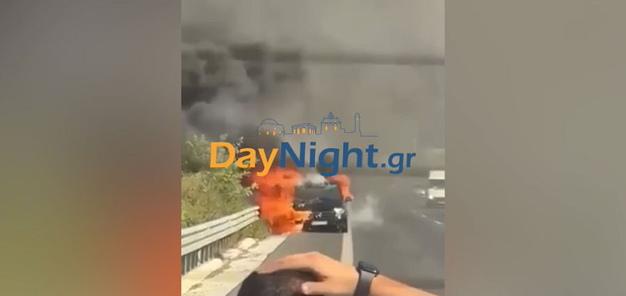 Αμέσως οι επιβαίνοντες πετάχτηκαν έξω από το όχημα, το οποίο δεν άργησε να τυλιχτεί στις φλόγες και να αρχίσουν να ακούγονται απανωτές εκρήξεις!