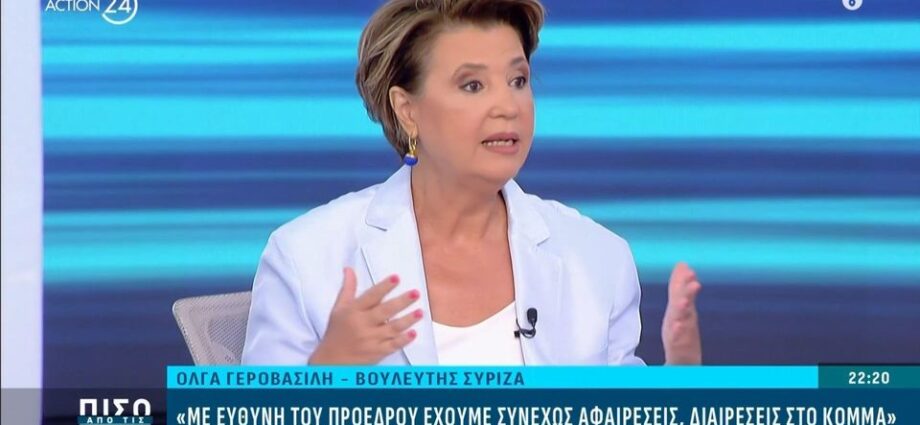 Την αγωνία της για την επόμενη ημέρα του ΣΥΡΙΖΑ και τη συνοχή του κόμματος εξέφρασε η Όλγα Γεροβασίλη απευθύνοντας έκκληση στον πρόεδρο του κόμματος, Στέφανο Κασσελάκη, να πάει σε εκλογές από τη βάση.