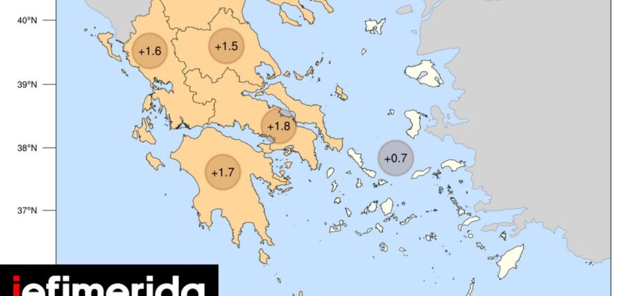 Οι μέσες μηνιαίες τιμές κυμάνθηκαν έως και +1,8°C πάνω από τα κανονικά για την εποχή επίπεδα, σύμφωνα με το δίκτυο των 53 μετεωρολογικών σταθμών του meteo.gr του Εθνικού Αστεροσκοπείου Αθηνών (Ε.Α.Α.).