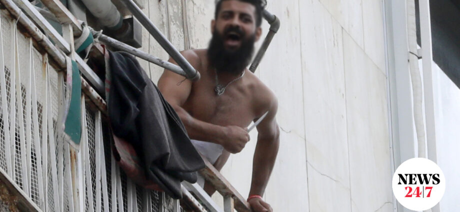 Υπενθυμίζεται ότι νωρίς το πρωί ο 28χρονος είχε είχε βγει στο μπαλκόνι κρατώντας μαχαίρι και απειλούσε ότι θα πηδήξει… Πηγή