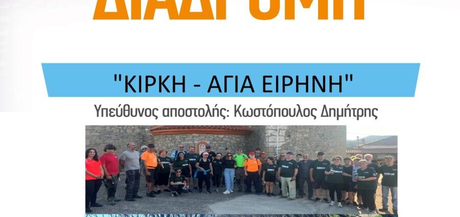 «Κυριακή 15 Σεπτεμβρίου, πεζοπορούμε στην Αγία Ειρήνη Κίρκης»