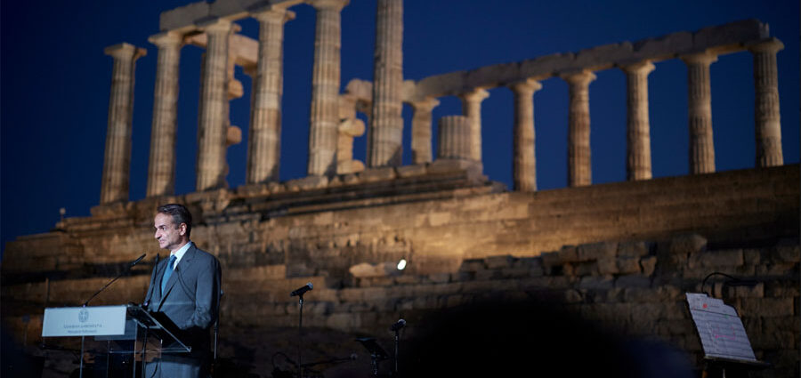 Ο νέος φωτισμός στο επιβλητικό μνημείο στο ακρωτήρι του Σουνίου εγκαινιάστηκε από τον πρωθυπουργό εχθές το βράδυ παρουσία της υπουργού Πολιτισμού Λίνας Μενδώνη και διακεκριμένων καλεσμένων, μεταξύ των οποίων ο Κωνσταντίνος Τασούλας, πρόεδρος της Βουλής, ο Ιάσων Φωτήλας, υφυπουργός Πολιτισμού, η Άντζελα Γκερέκου, πρόεδρος του ΕΟΤ, ο Ευάγγελος Βενιζέλος, ο ακαδημαϊκός Μανόλης Κορρές, ο Αντώνης Παπαδημητρίου, πρόεδρος του Ιδρύματος Ωνάση κ.ά.