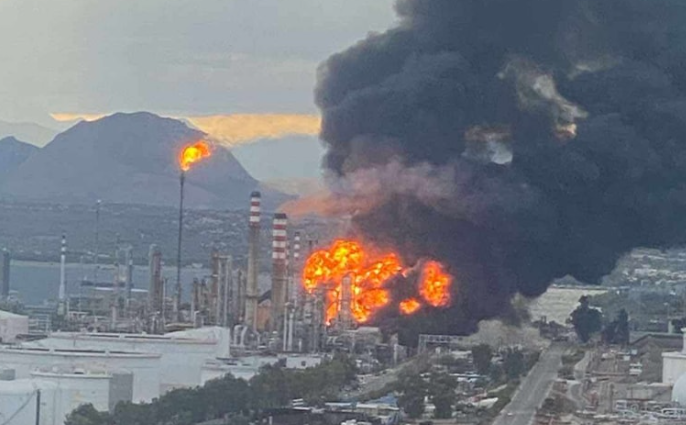 Η φωτιά έχει ξεσπάσει εντός των εγκαταστάσεων του διυλιστηρίου.